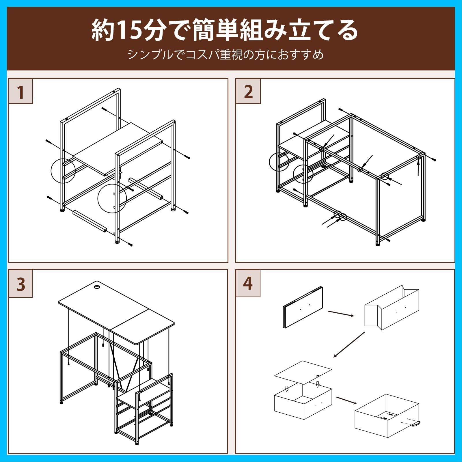 【最強な収納機能】サイドラック、サイド袋、引き出しも装備していますので、本、辞書、CDなどの収納はとても便利です。収納一体型で空間利用率UP!。仕事用はもちろん、子供の勉強机としてもベストチョイスです。