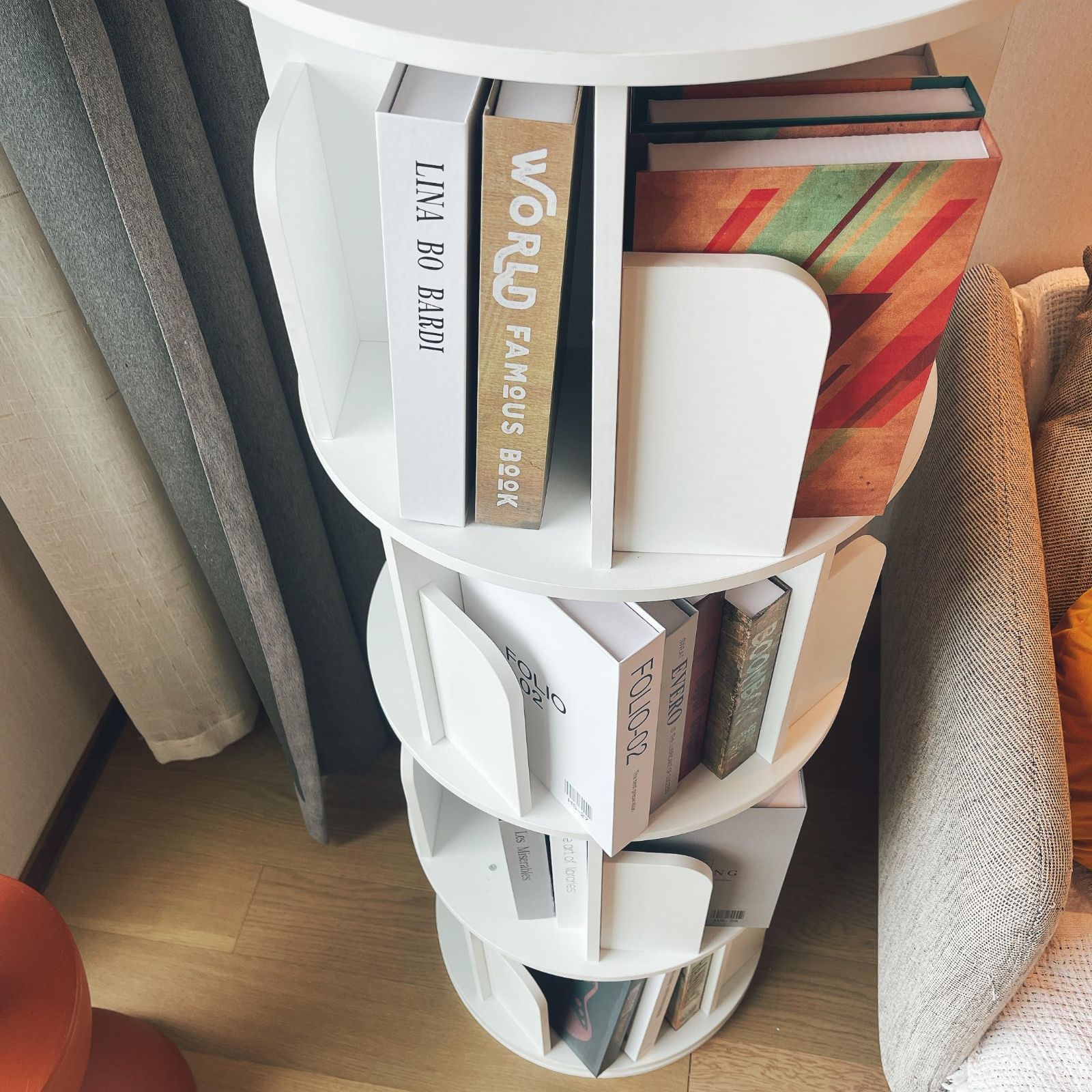 ホワイト 4段 本棚オーガナイザー 子供 大人用 本棚収納ラック フロアスタンディング ディスプレイ 360 木製回転本棚 Heehee