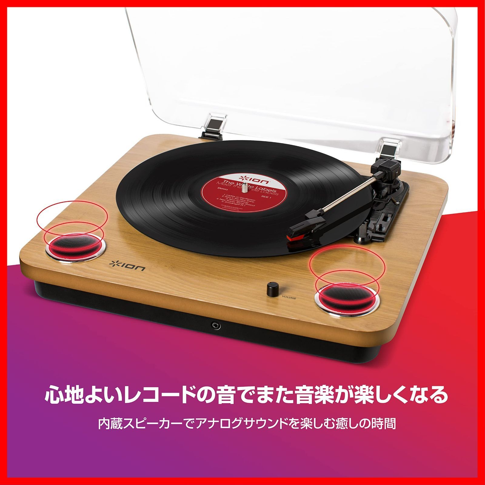 ION Audioレコードプレーヤー スピーカー内蔵 USB ヘッドホン端子 レコードの音をUSB接続でPCに録音可能 33-1/3、45、78回転対応 アイオン Max LP 木目