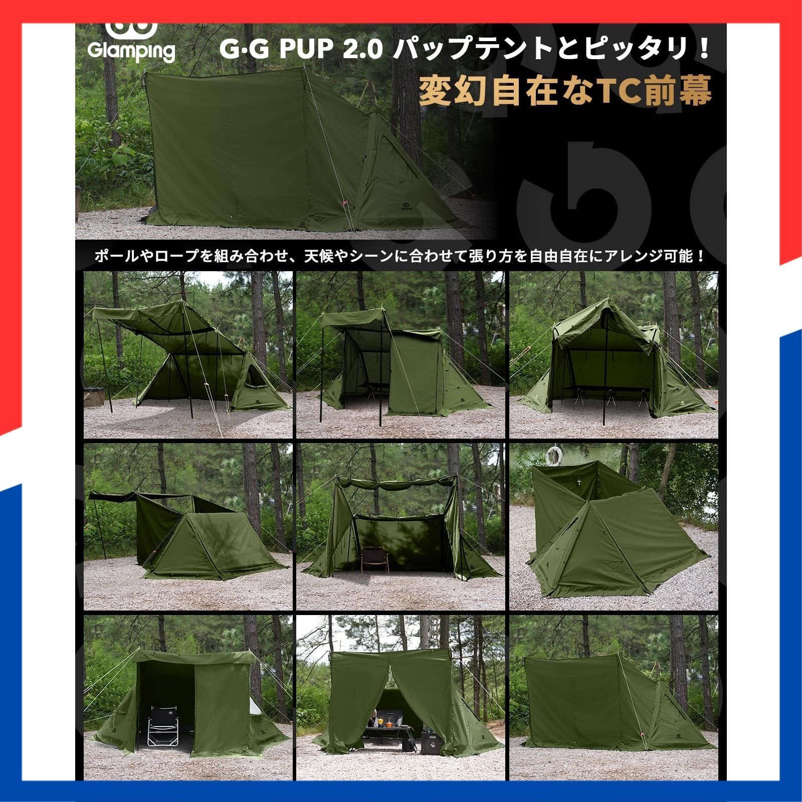 数量 PUP G 2 0パップテント 前幕tc 1人用 炎幕 ポリコットンテント 前幕 中央の耐水ファスナー 着脱 なファスナー付き 焚き火可 GOGlamping 難燃 遮光 日よけ 撥水 開閉 コンパクト ソロ用キャンプ 4シー