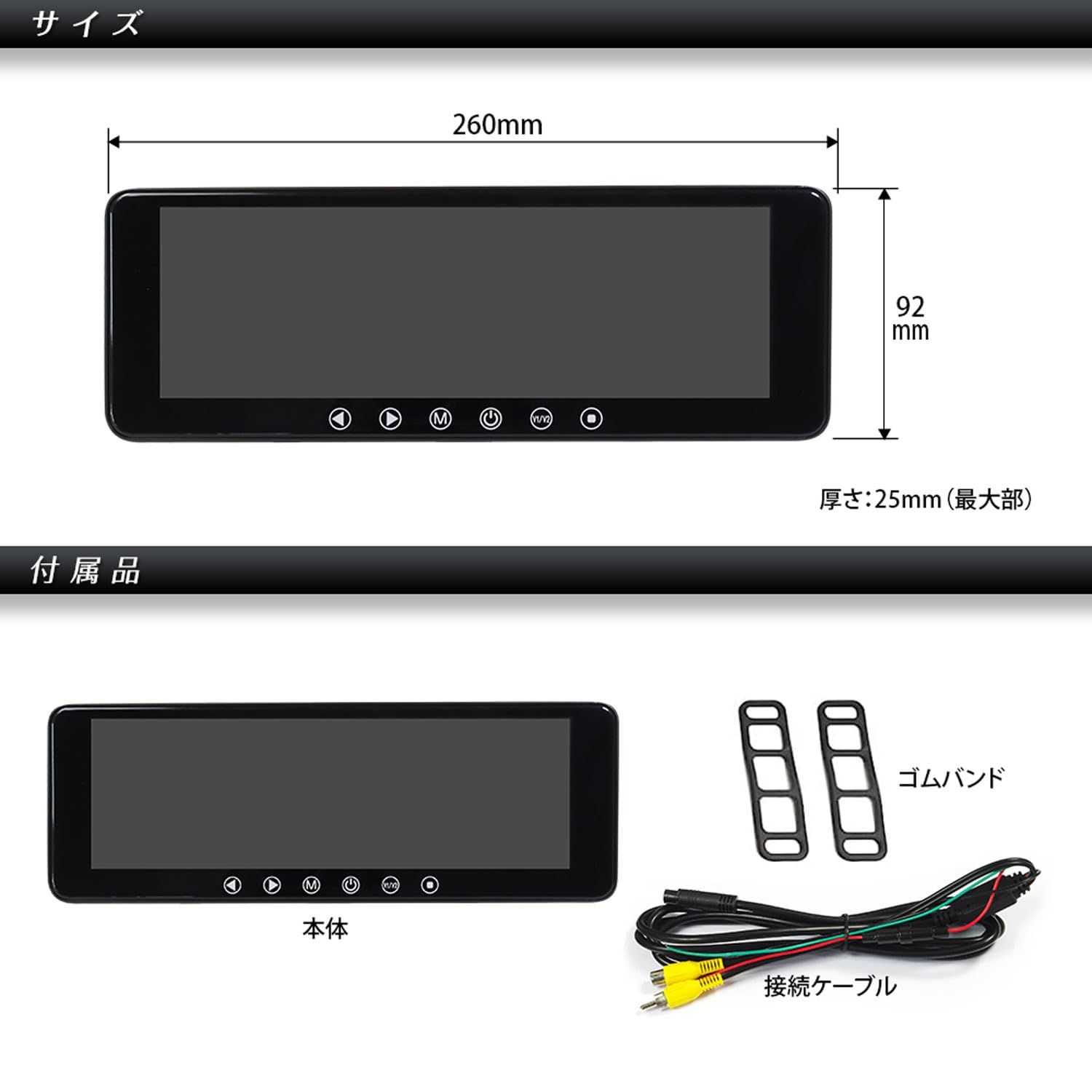 マックスウィン(Maxwin) ルームミラーモニター 9.1インチ バックミラーモニター タッチパネル 液晶 12V/24V対応 2系統映像入力 バックカメラ連動 ゴムバンド MR911