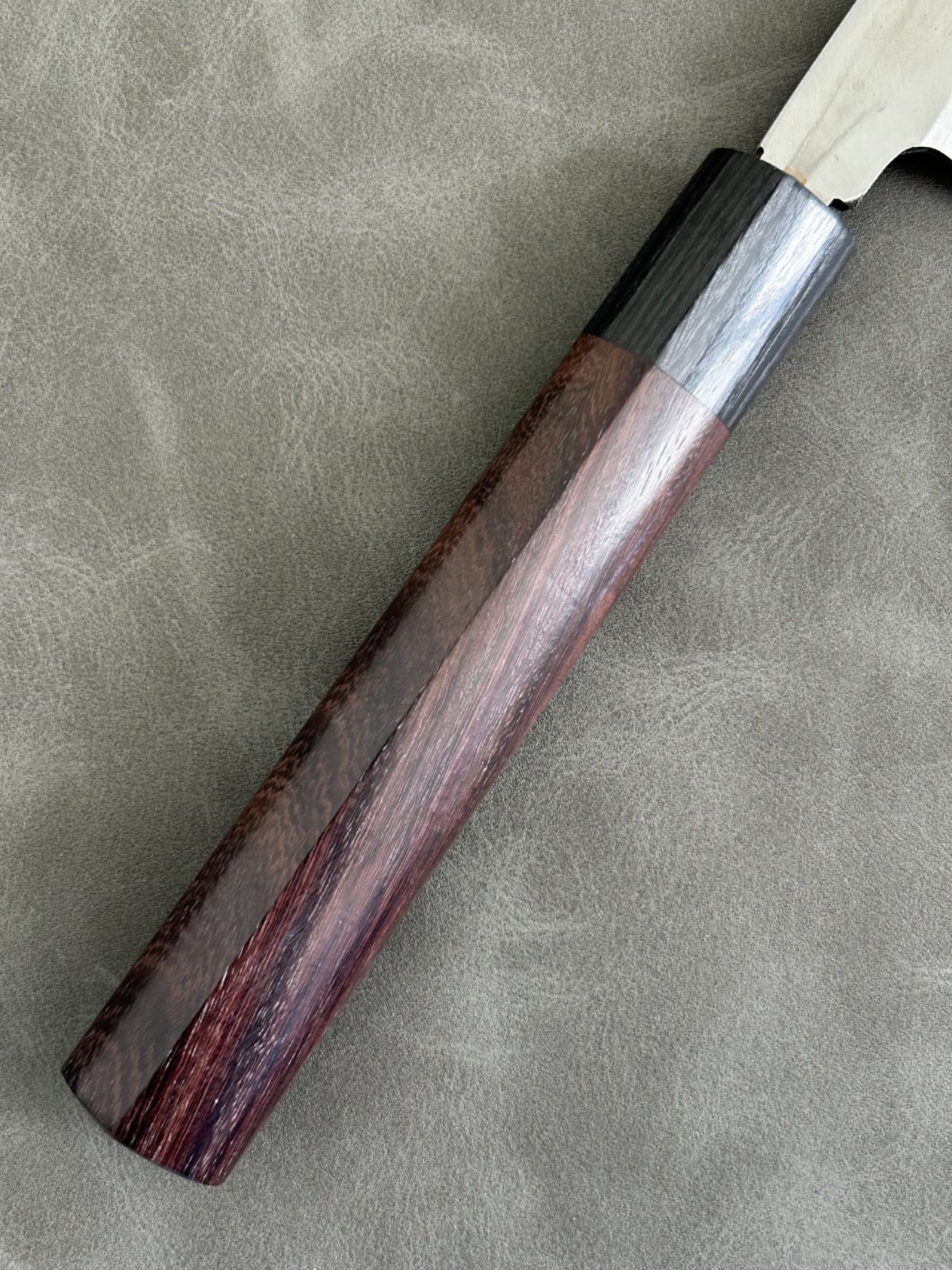 柄は紫檀シノギを使用しており、見た目が美しい和包丁に仕上がりました。