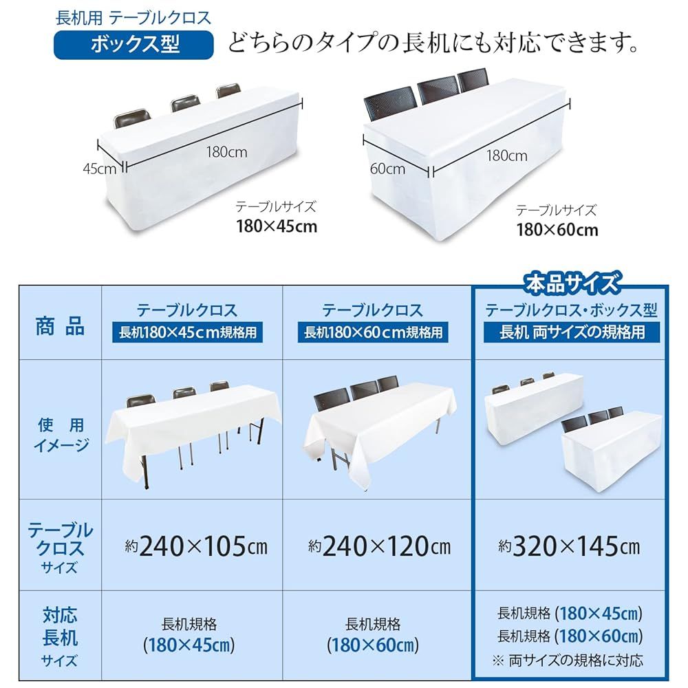 品 につき 価格 テーブルクロス 長机用 セット 145 320 cm ボックス型用 ホワイト 無地