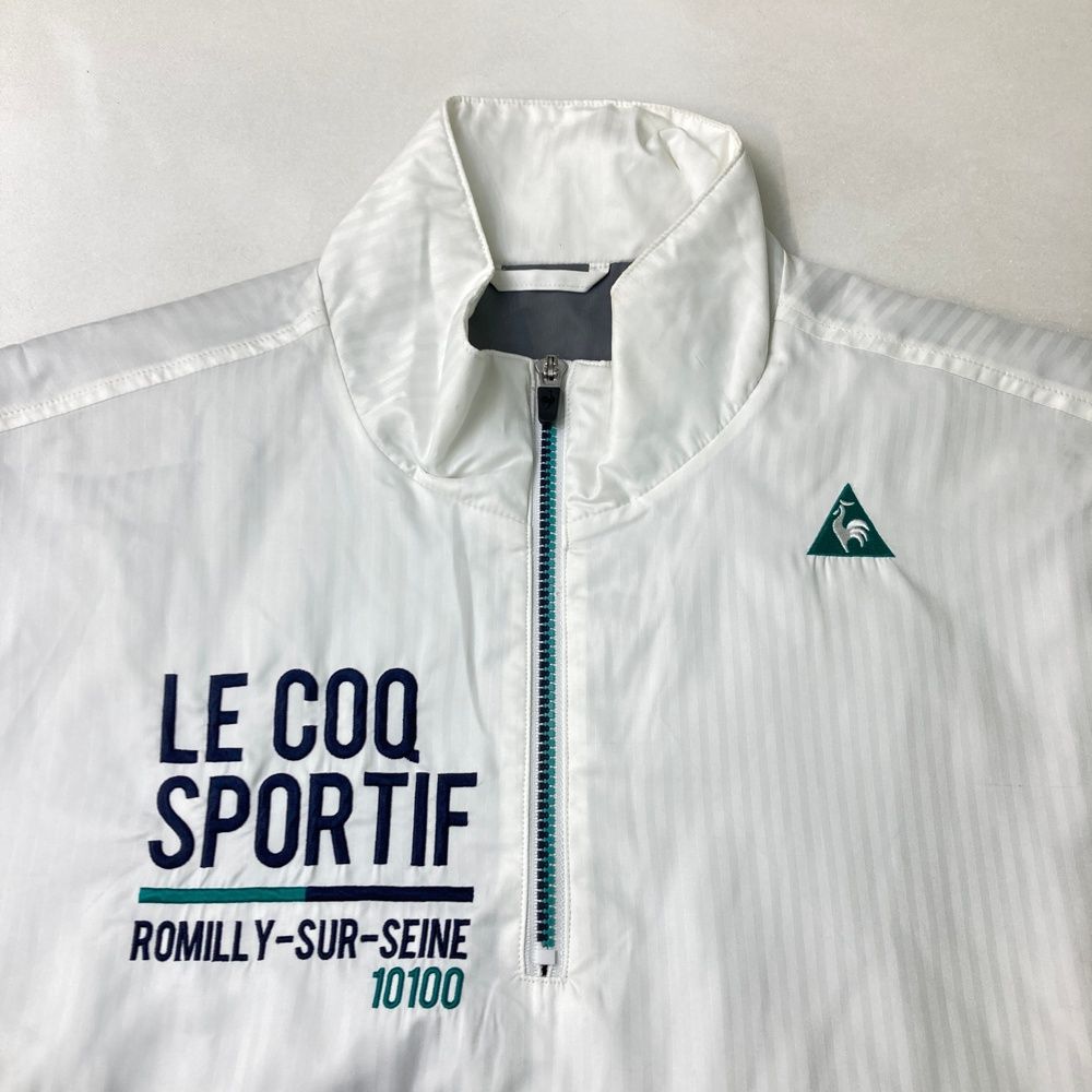 サイズ LL LE COQ GOLF ルコックゴルフ ハーフジップ半袖 中綿ブルゾン ストライプ柄 ホワイト系 ゴルフウェア メンズ ストスト