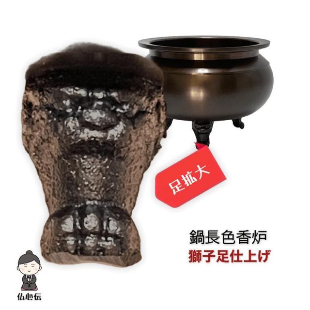 香炉灰付き 4 5号 鍋長色机上香炉 口径12 5 cm 真鍮 ブラウン 線香立て 香呂 各宗派 高岡仏具 国産品