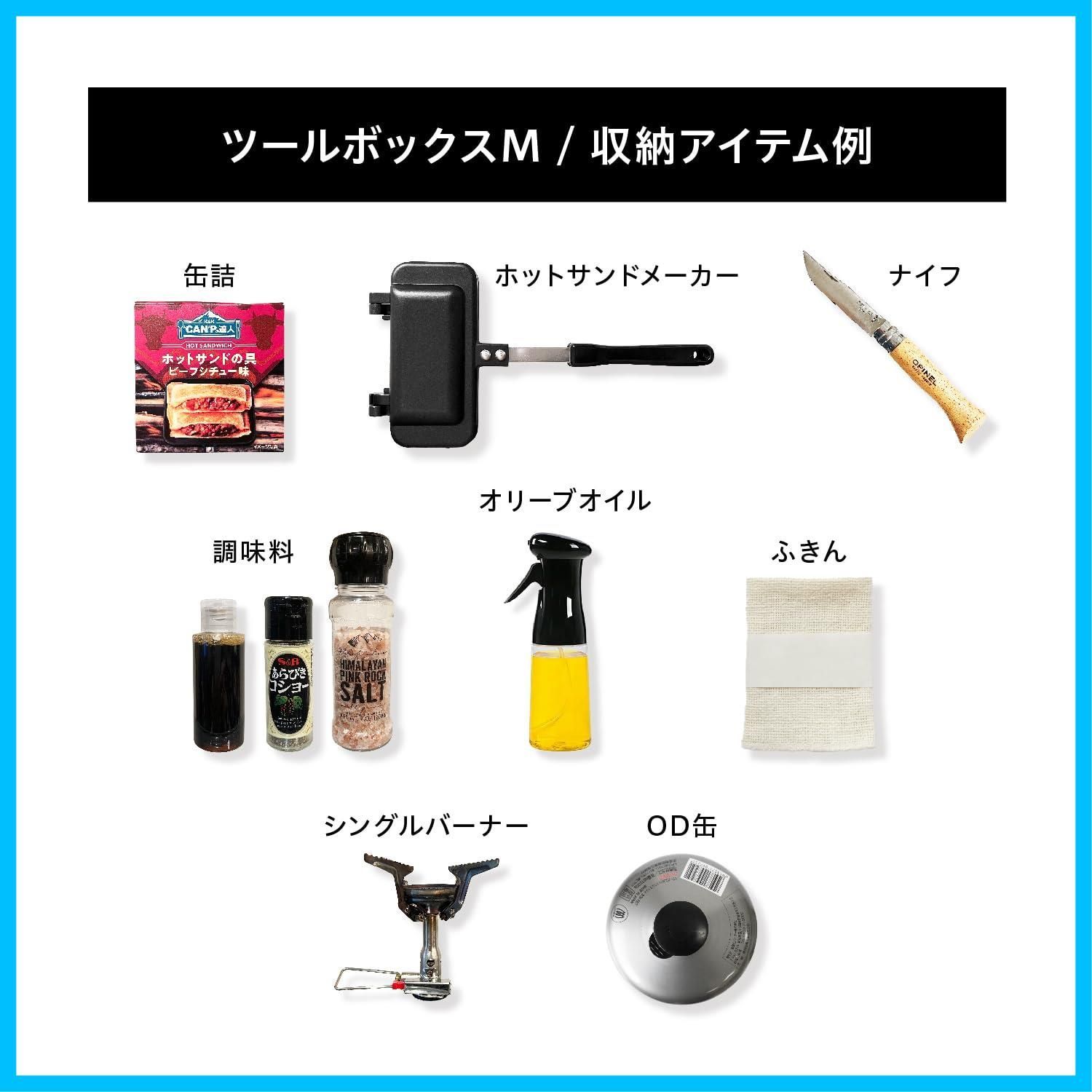 ・フラップ式のフタは中身が見やすくツールの出し入れも簡単なBOX型ケース。ハンマーやペグ、調味料など、収納するものに合わせて選べるサイズ展開。