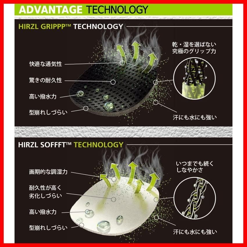 HIRZL GRIPPP(TM)テクノロジーで加工されたカンガルーレザー、通気性の良いエアテックメッシュ、耐久性に優れた合成皮革の組合わせ。