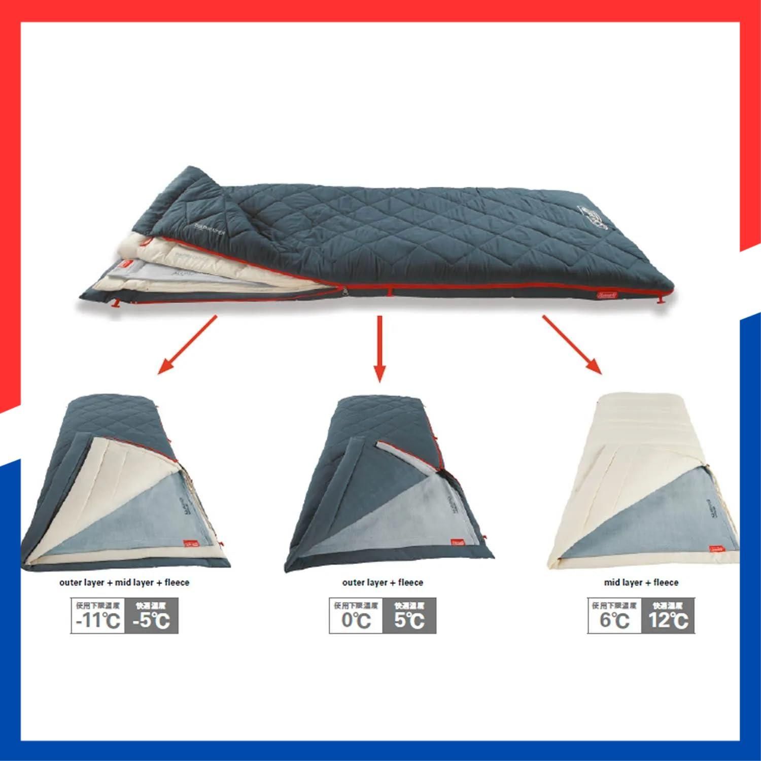 商品 マルチレイヤースリーピングバッグ シュラフ オールシーズン 寝袋 封筒型 コールマン Coleman 使用下限温度 5度