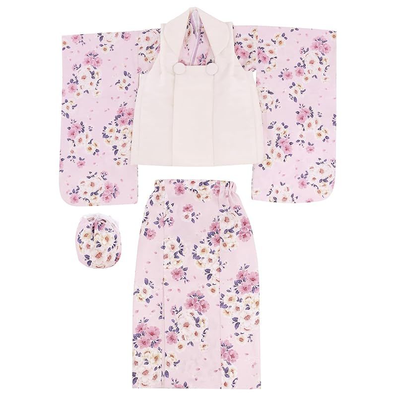 商品名:【新品】 [KYOETSU] [キョウエツ] 自宅で簡単着付け 七五三 3歳 女の子 着物 セパレート 二部式 セット 被布 小物 フルセット 753 4点セット くすみ (9.夢咲桃花, 90-100cm)
