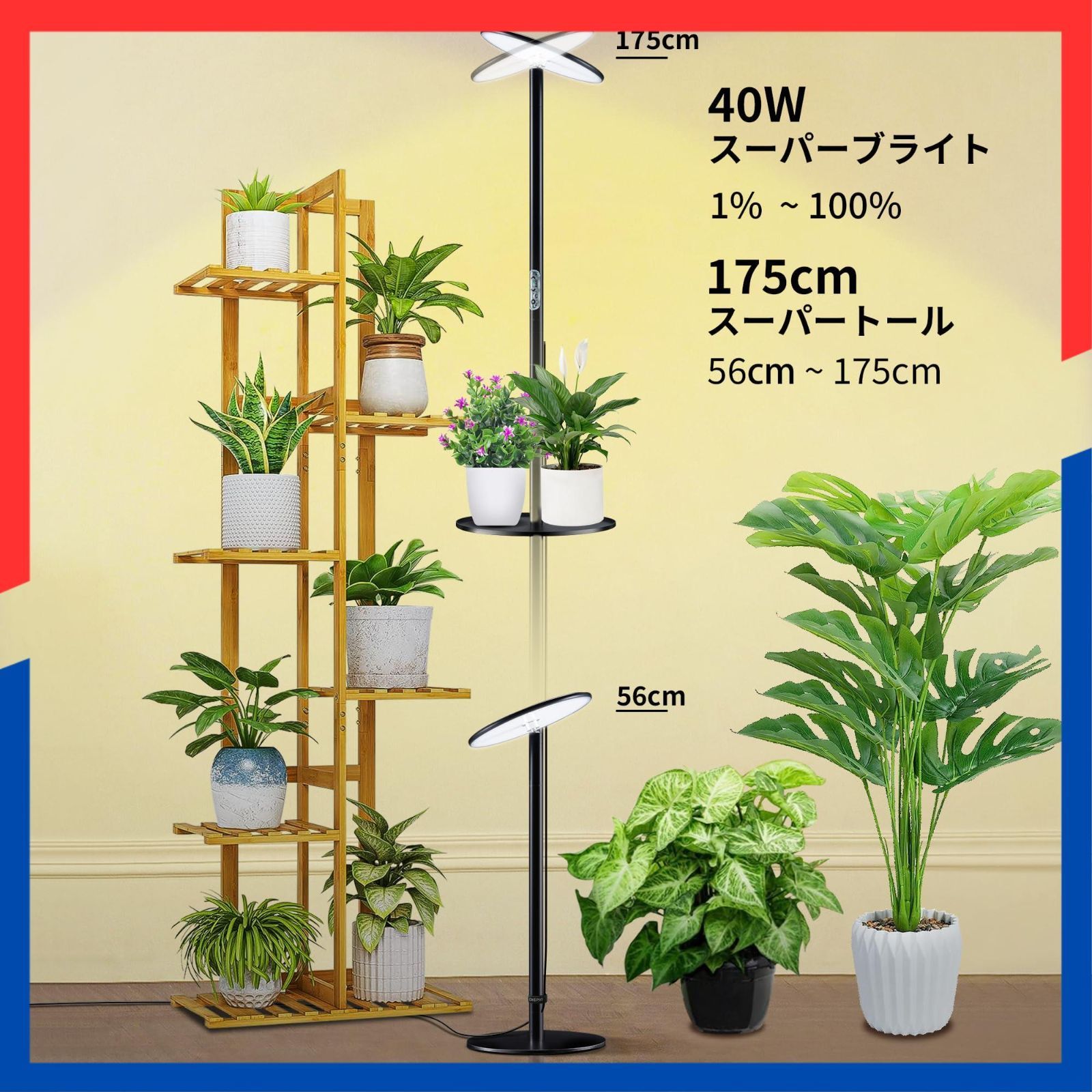 chiphy 植物育成ライト植物成長ライトled 室内植物栽培 高さ調節可能 175cm 屋内園芸 水生植物栽培 大/小型植物用… (175cm(2300K-6500K、トレイ&リモコン付き))