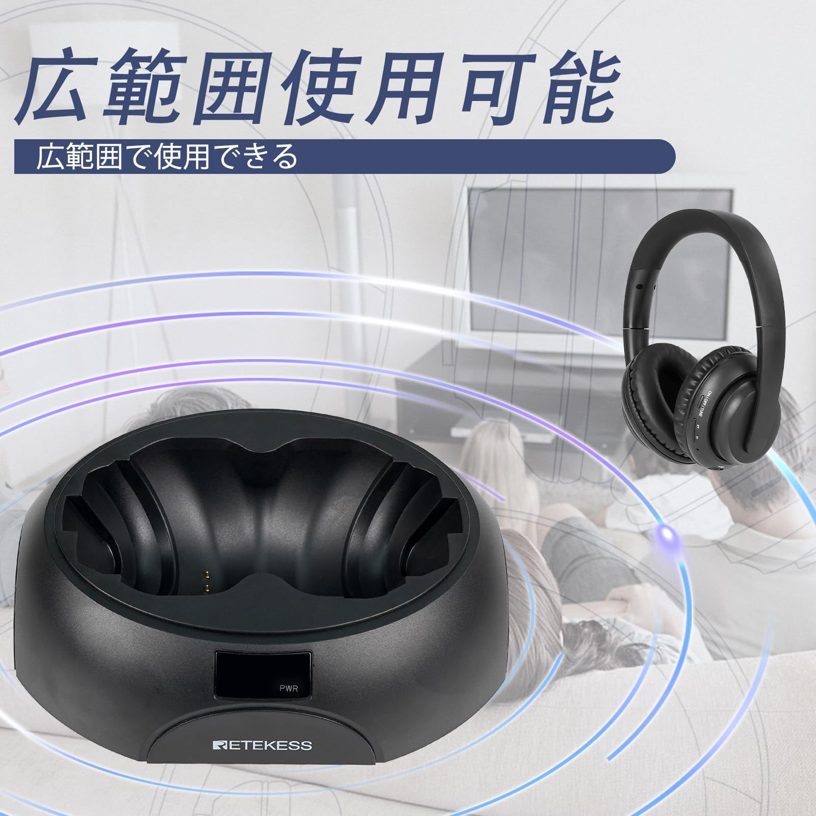 ヘッドホン LCD テレビ 電量表示 長時間連続再生 ヘッドフォン 広い使用距離 ステレオ TA 006 2台以上同時接続 同軸 光デジタル 3 5 mmオーディオ RCA対応 Retekess オーバーイヤーヘッドホンTV用イヤホン