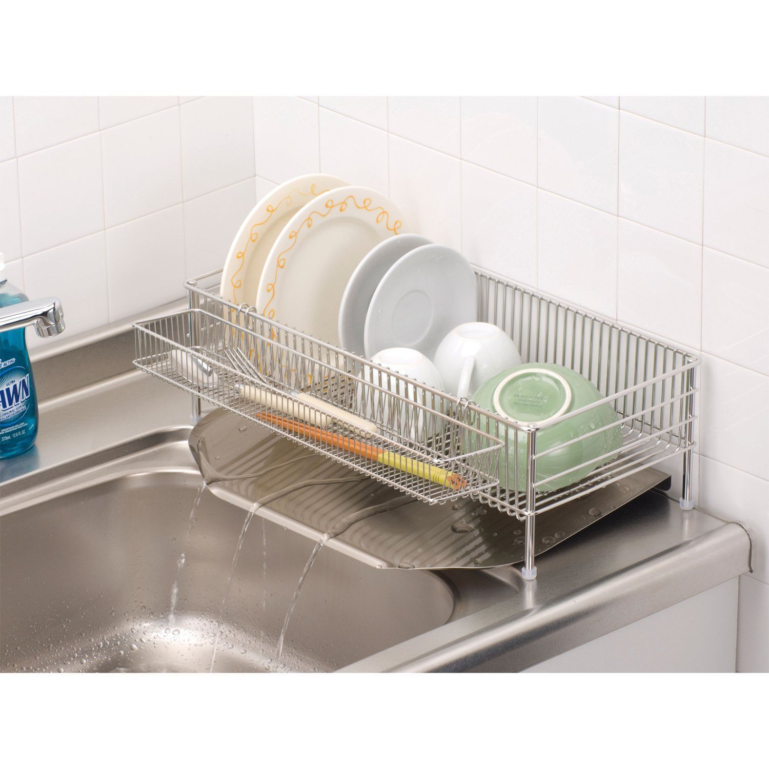 水切りかごの長い辺の方向へ水が流れる