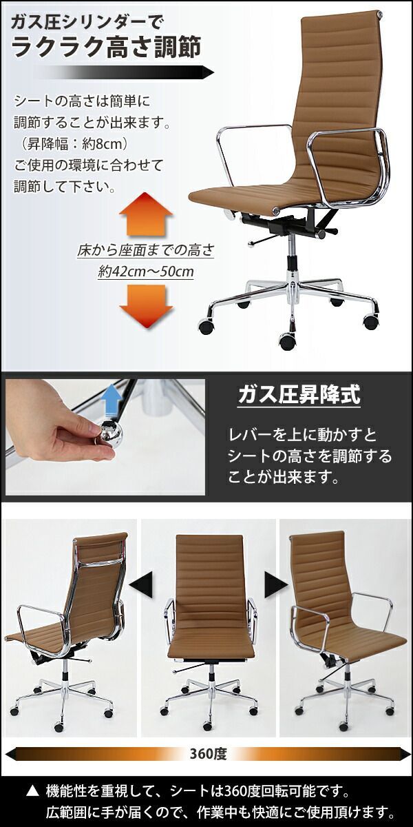 イームズアルミナムチェア ハイバックチェア 本革 キャスター 肘掛け クロムメッキ クロームメッキ 回転 昇降 高さ調節 レザー オフィスチェア ロッキングチェア ミーティングチェア 椅子 いす イス チェアー 会議室 書斎 1010 l 選択 ブラック