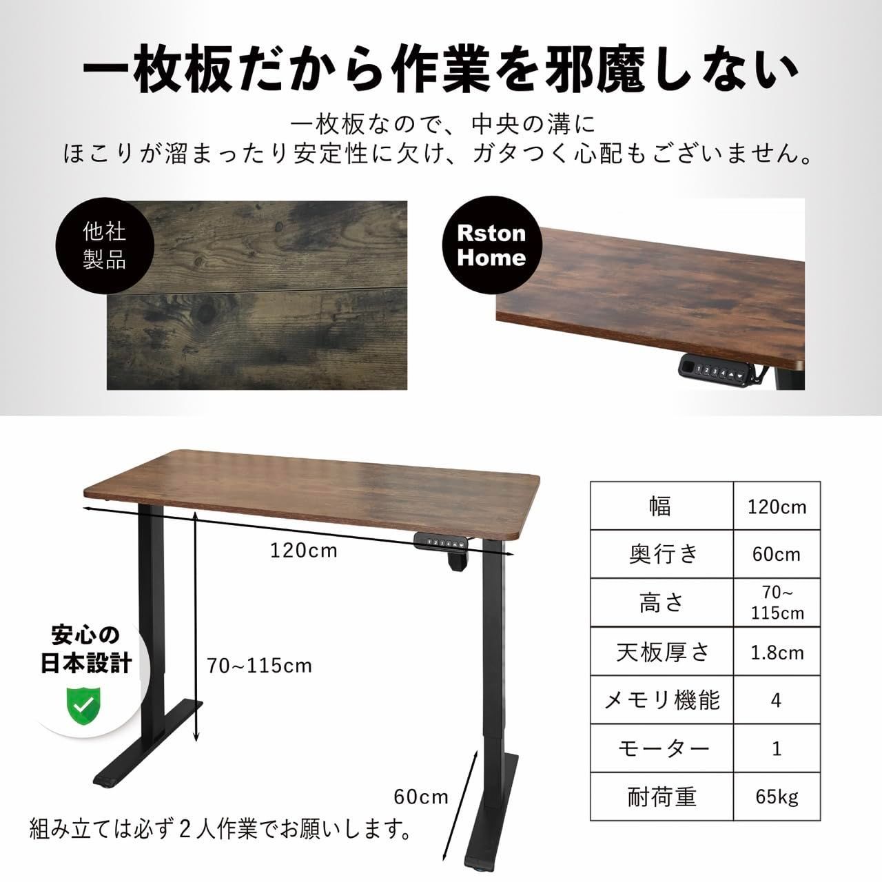 オフィスワークテーブル Home 電動 昇降式デスク 天板 板 スタンディングデスク 幅120 cm 奥行60 高さ70 115 上下昇降デスク 4段階 高さメモリー機能 Rston 静音 衝突検知 pc オフィスデスク ミーティングテーブル テレワー
