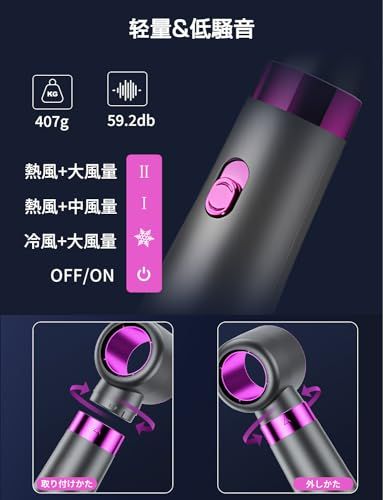 【5IN1ドライヤー&ヘアスタイリングツール】このドライヤーには5つの交換パーツがついています。ヘッドは中空スタイリング、風を集める口、カール櫛、半円櫛、ストレート櫛。ドライ、カール、ストレート、ふんわり、スタイリング機能が一体となっています。【ご注意:こちらの商品でスタイリングしたいお客様は、一定のスタイリング経験が必要となります。それから、櫛の構造は比較的硬くて、頭皮の脆弱な人は慎重に買います。】自宅で簡単にサロンスタイルが作れます。【ご注意:インストール方法は商品ページの動画をご参照ください。】