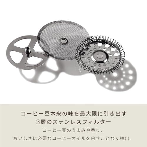 本体には、汚れがつきにくく、耐熱性に優れ、コーヒー本来の風味を変化・劣化させないホウケイ酸ガラスを使用。