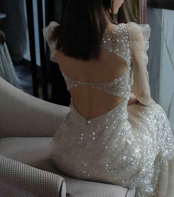 スリム ロングドレス バックオープン 長袖シースルー ビジュー