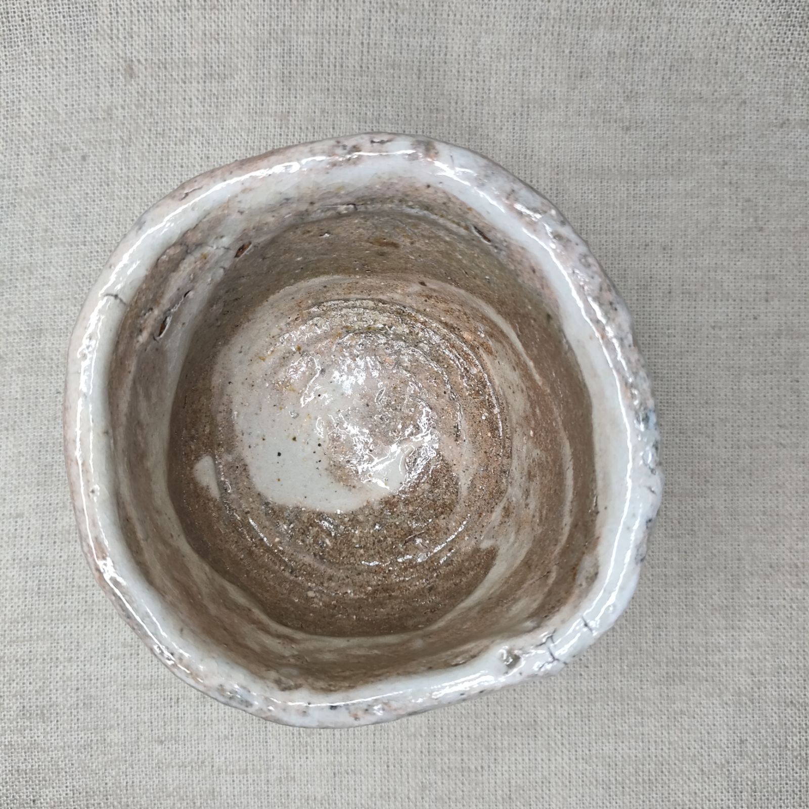 刷毛目ぐい呑 創作ぐい呑 唐津焼 刷毛目唐津 山茶窯 石ハゼぐい呑 粗目石混じりぐい呑 変わり高台 酒器 sazan gama