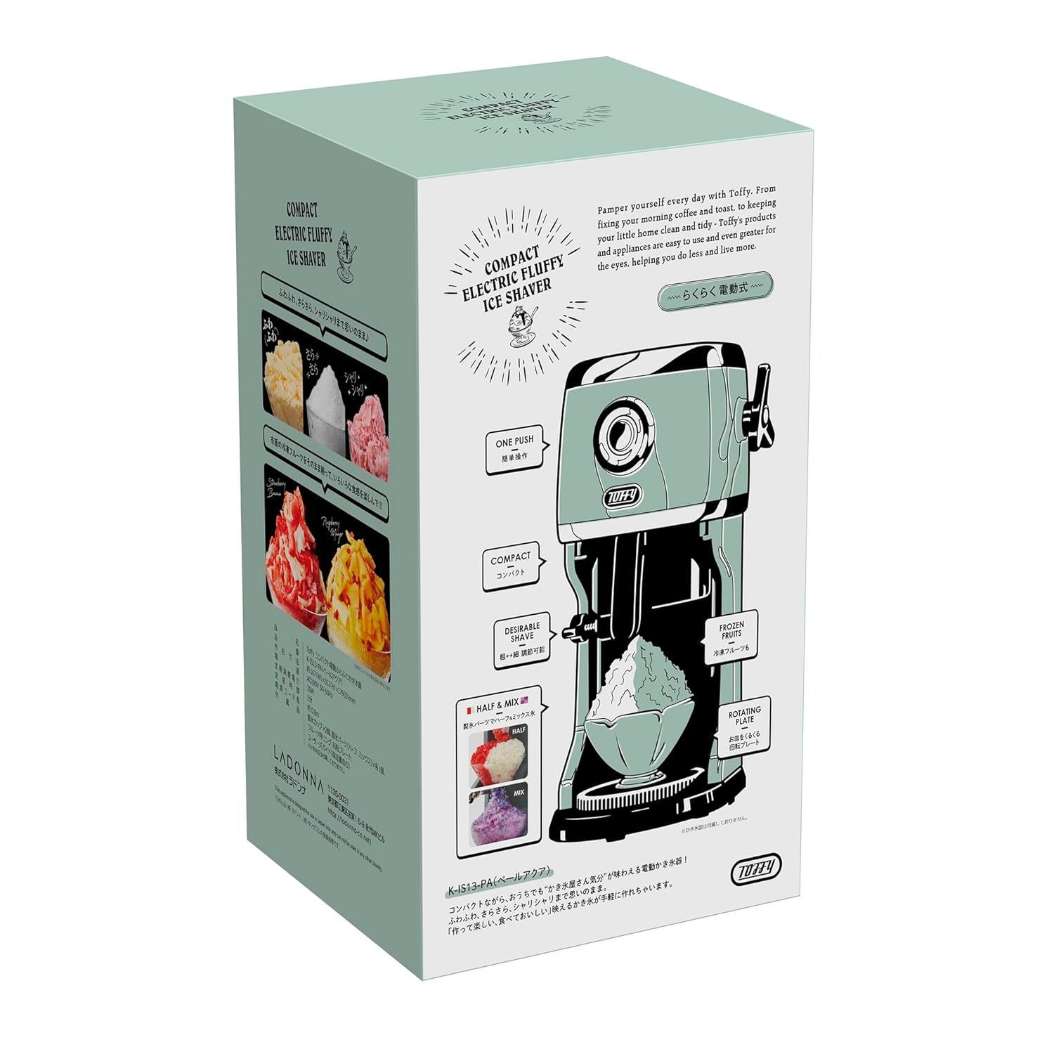 Toffy 電動ふわふわかき氷器 K IS 13 ペールアクア 製氷カップ付き PA