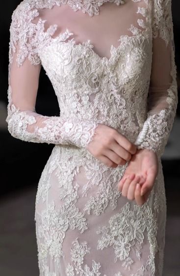 総レース ウェディングドレス マーメイド 長袖 エレガント