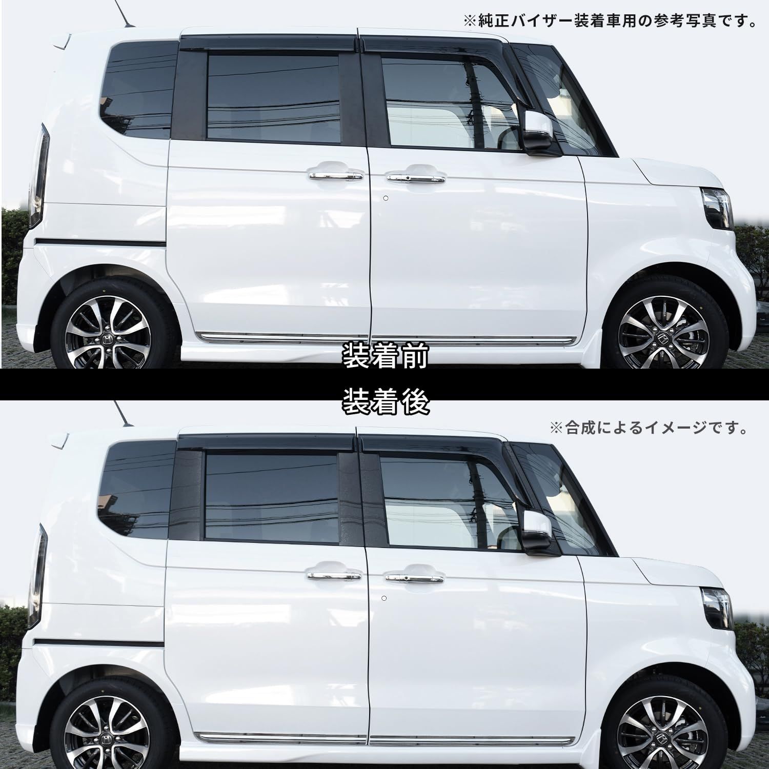【適合車種】ホンダ N-BOX JF5・JF6(2023年10月-) サイドバイザー未装着車専用【※以下の車両は装着不可※】取り付け部分がコーティングで保護されているお車(接着強度の確保が難しい為)