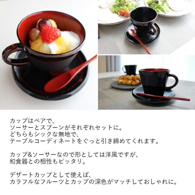 コーヒーカップ ソーサー 食器 マグカップ ティーカップ ギフト おしゃれ 天然木 木製 180 ml ブラウン 八雲塗 漆塗 和食器 国産 職人 海外 手土産 モダン セット 来客用 カフェ風 スプーン付 結婚祝い 新築祝い 新居祝い