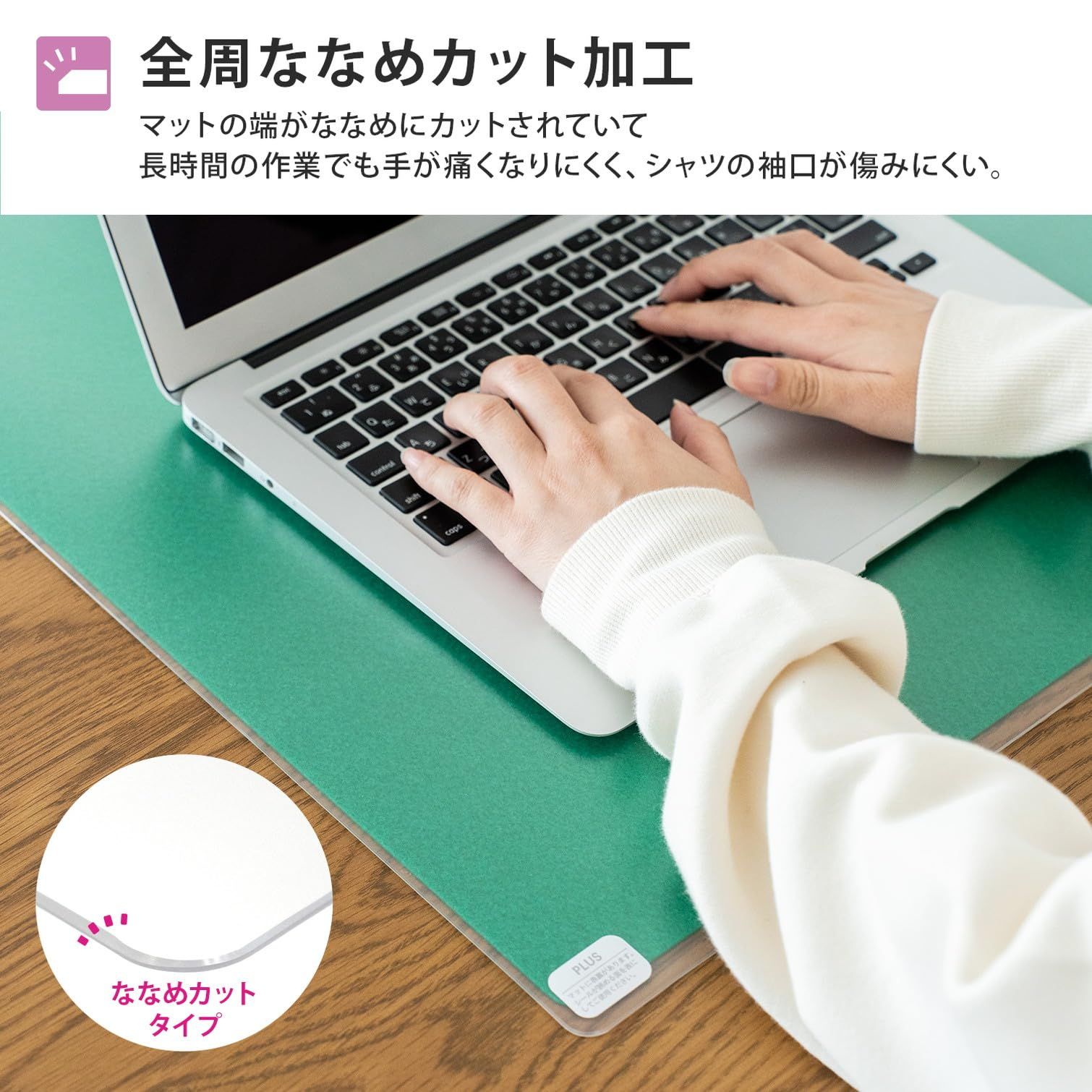 エッジを斜めにカット加工しているので、長時間の作業でも手が痛くなりにくいマットです。