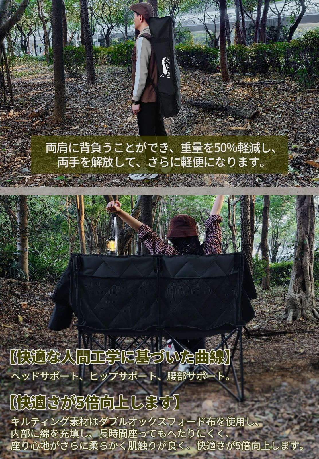 DesertFox キャンプ 椅子 2人掛け アウトドアチェア 二人用 折りたたみ コンパクト ソファチェア カップルチェア【独自開発のカップホルダー&クーラーボックス】 【耐荷重300kg】 枕付き 軽量 イス 椅子 収納袋付き お釣り 登山 運動会 ガーデン 室内 携帯便利 SRY