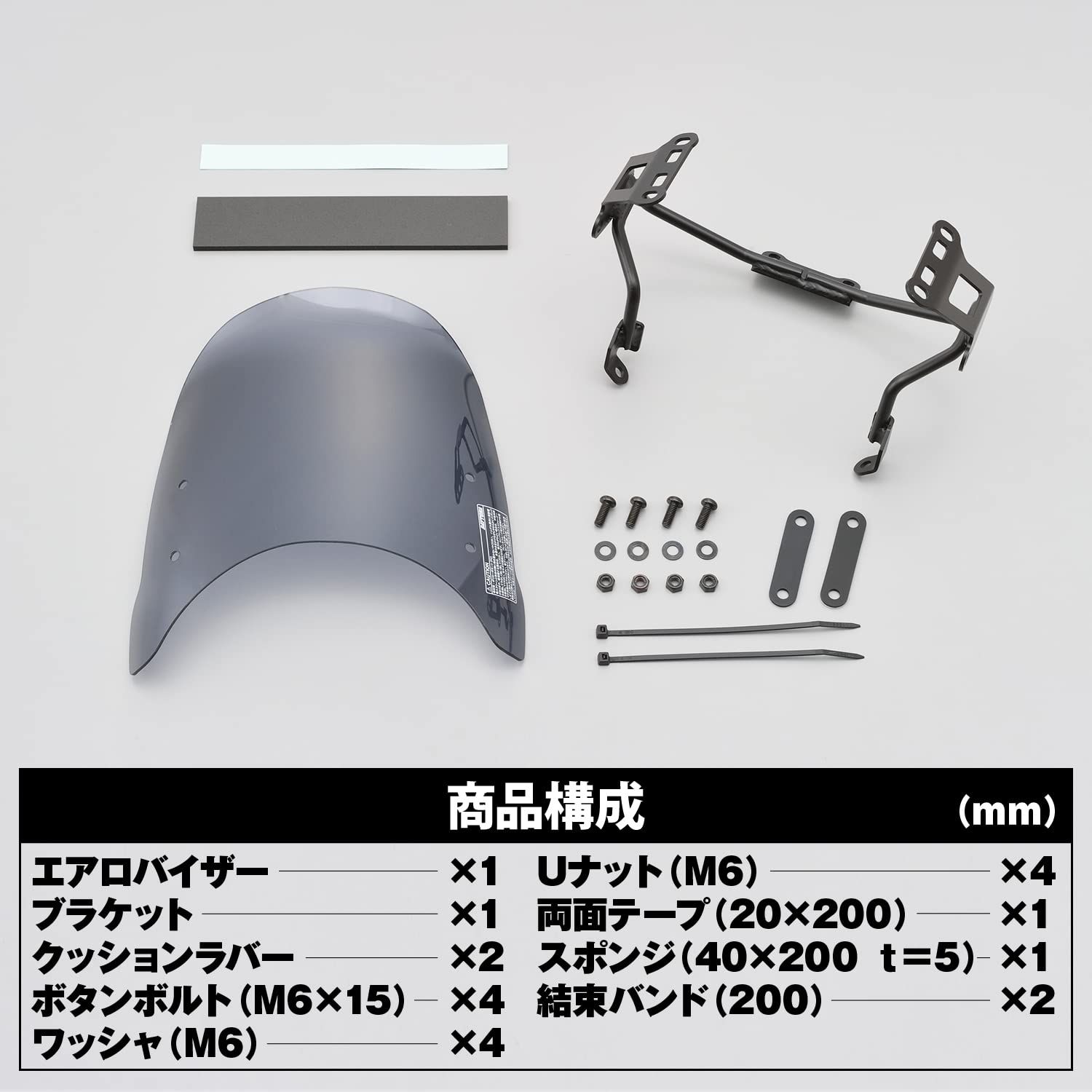 エアロバイザーのスクリーンとステーがセットになった車種別専用キット。