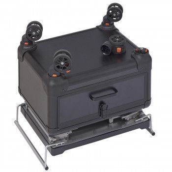 ●下段引き出しボックスには中仕切り2枚付き。※移動用固定ベルト付き。