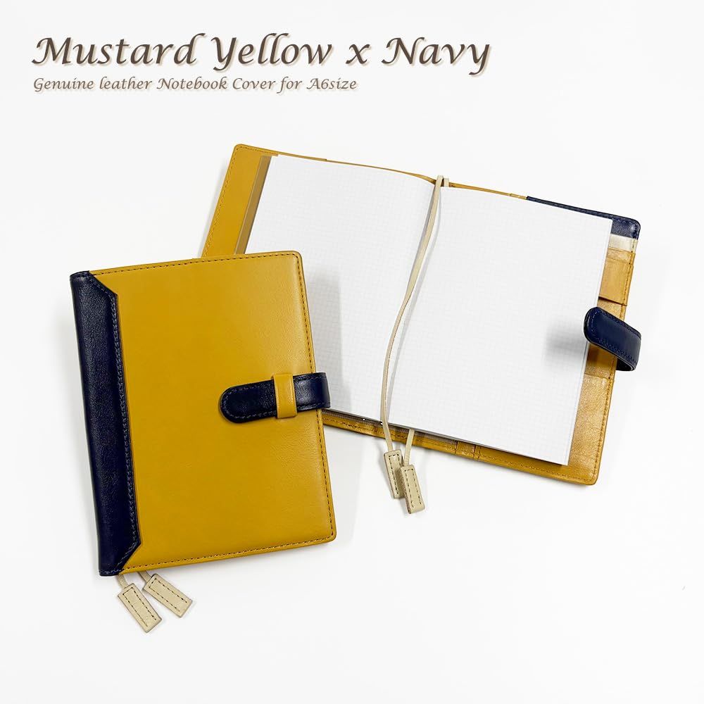 シールアル 手帳カバー A ベルトつき 本革 革 レザー バイカラー 名入れなし 09.マスタードイエロー×ネイビー