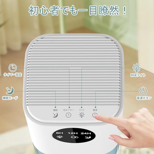 【7色LEDライト・お休みモード】除湿機操作部のライトボタンを押すと、ライトボタンを押すと、ライト色の自動切り替え、ライト色の選択、オフの 3 つのモードを切り替えます。睡眠ボタンを押すと、除湿機の運転音を睡眠の邪魔されない図書館レベルまで下げます。