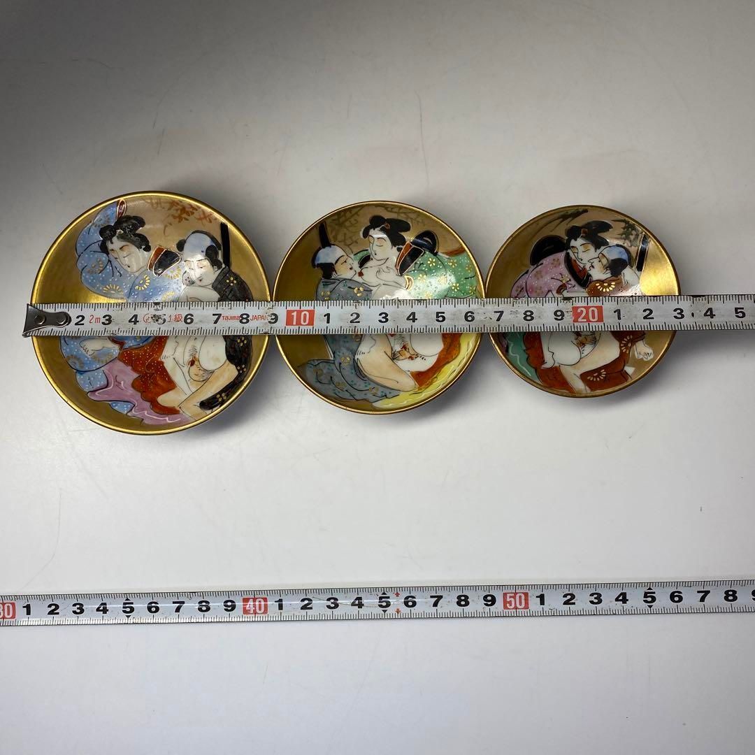 九谷焼 上手 春画 三ッ盃 共箱 直径9 7 8 7㎝ 東な6 0722