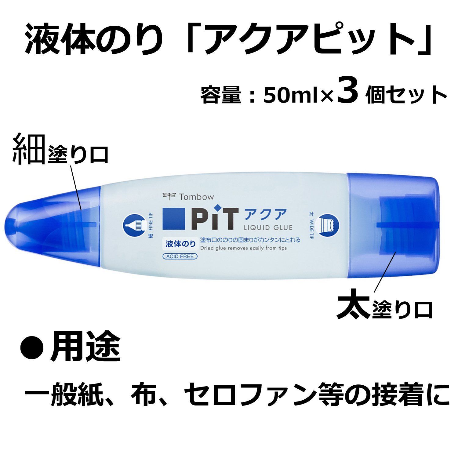 ●塗り口が太・細ツインで使いやすい。●塗り口にのりが固まっても簡単に取れていつもきれいに使えるシリコーンラバーの太塗り口。 ●一般紙布セロファン等の接着に。●PT-WT 3コ入り
