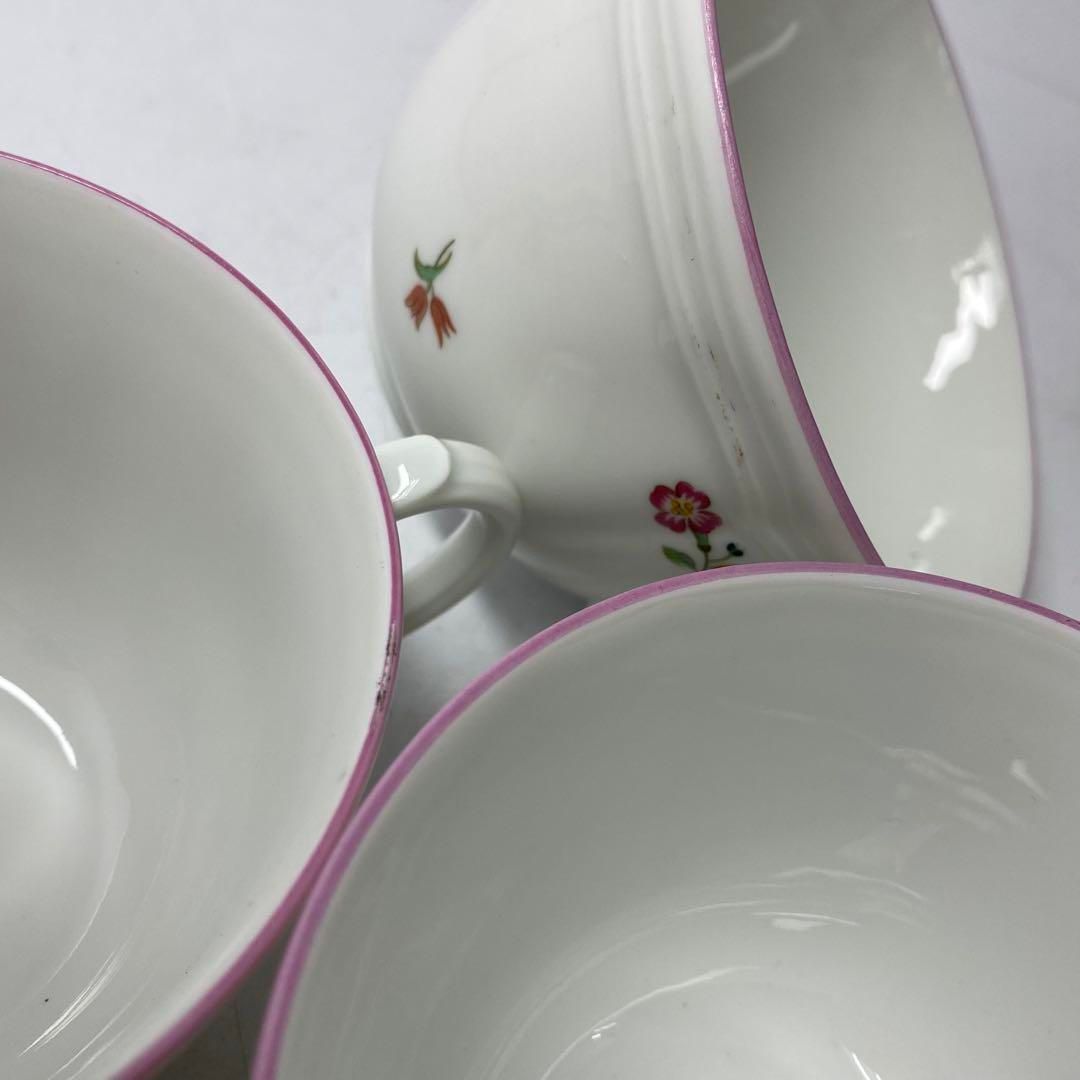 シュガーポットの取手と表面に小傷、カップの表面と縁に彩色の剥がれがあります。