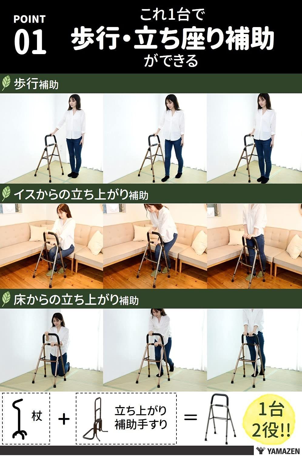 数量 ブロンズ 幅44 47 奥行41 50 高さ80 95 cm 手すり 杖 KTA BZ 室内 軽量 7段階高さ調節 完成品 歩行補助 立ちあがり補助 山善 YAMAZEN