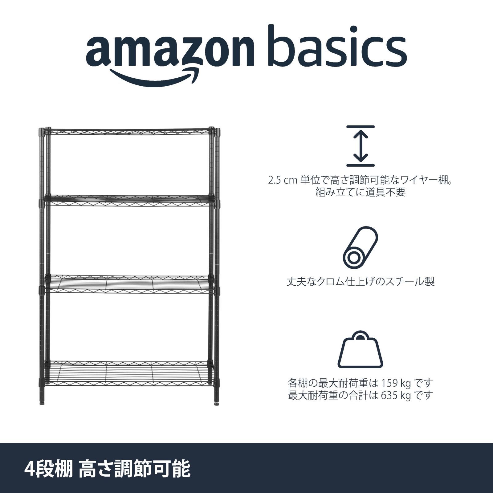 ベーシック 4段スチールラック 棚 メタルラック 耐荷重635kg 幅91.4 x 奥行35.6 x 高さ137.2cm ブラック