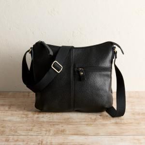24×28×6cm 牛革、綿 約430g 身体にフィットするボディバッグ形状で薄マチながら500mlペットボトルや長財布をまとめて収納できるサイズ感。大きく開くメイン開口部はループ状の革に指を引っ掛けて楽にファスナー開閉が出来ます。ファスナー開閉式。内ファスナーポケット×1室、オープンポケット×2室・外ファスナーポケット×2室。ショルダーベルト着脱不可(長さ調節可)。