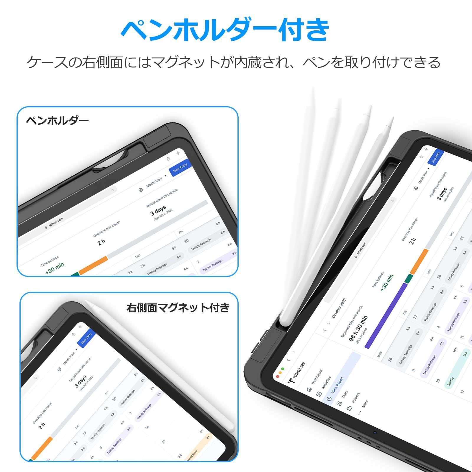 【分離式のデザインで携帯に優れ】分離式のデザインで、タイピングが完了したら、キーボードを取り外して、ペンタブレットとして使え、クリエイティブな作業を楽しく行えます。また自由にスケッチ、鑑賞、リーディングができます。電車での移動時や外出時、キーボードを取り外すだけ、iPadカバーとして使えます。よりコンパクトに持ち運ひができます。キーボードケースはiPadに完璧にフィットするように成型され、前面、背面、およびコーナーを傷や衝撃から保護します。