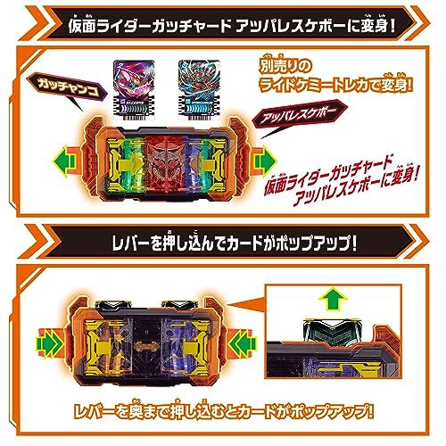 付属するライドケミートレカで「仮面ライダーガッチャード スチームホッパー」「仮面ライダーガッチャード オドリマンティス」への変身なりきり遊びが楽しめます。