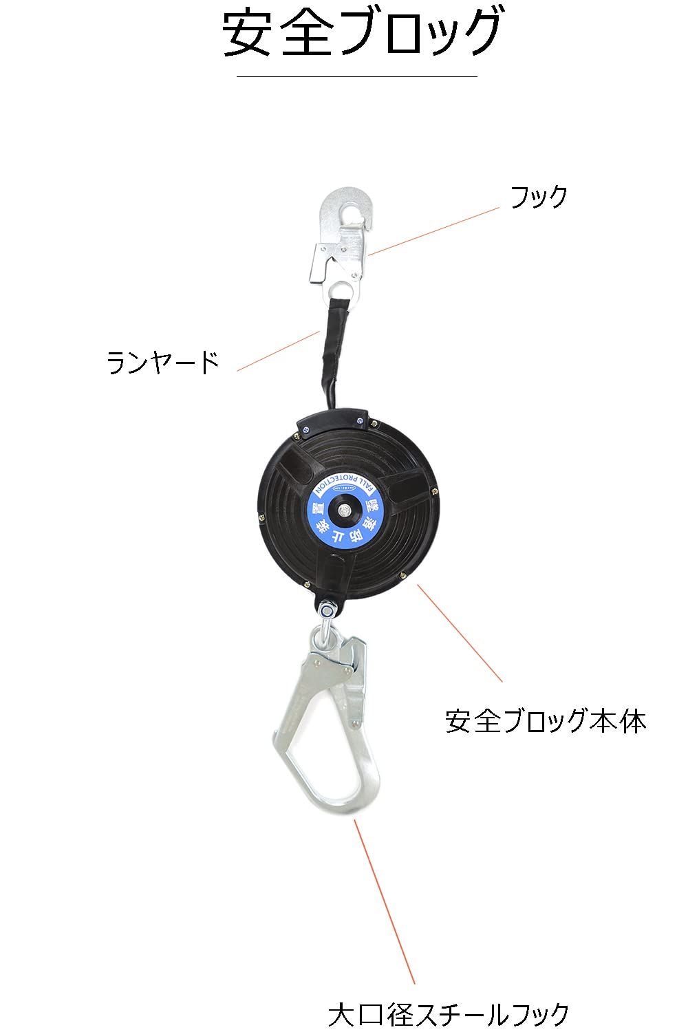 安全ブロック 6.1M 墜落防止装置(仮設用) 昇降用 Ulmior 安全 ブロック 昇降墜落防止装置 衝撃吸収 巻取式安全ブロック 引寄せロープ 取り付き説明書 収納バッグ [安全帯 落下防止 電気工事 高所での安全作業]
