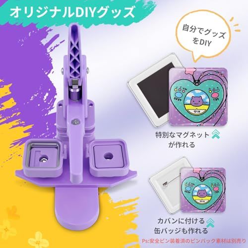四角形マグネット缶バッジメーカー 回転式缶バッチマシーン 50 mm四角形缶バッヂ マグネットバッジ素材 付き DIYグッズ バッヂ製造機 お祭り 応援イベント 入学祝いプレゼント パープル po 37 c 8 a 6 ac