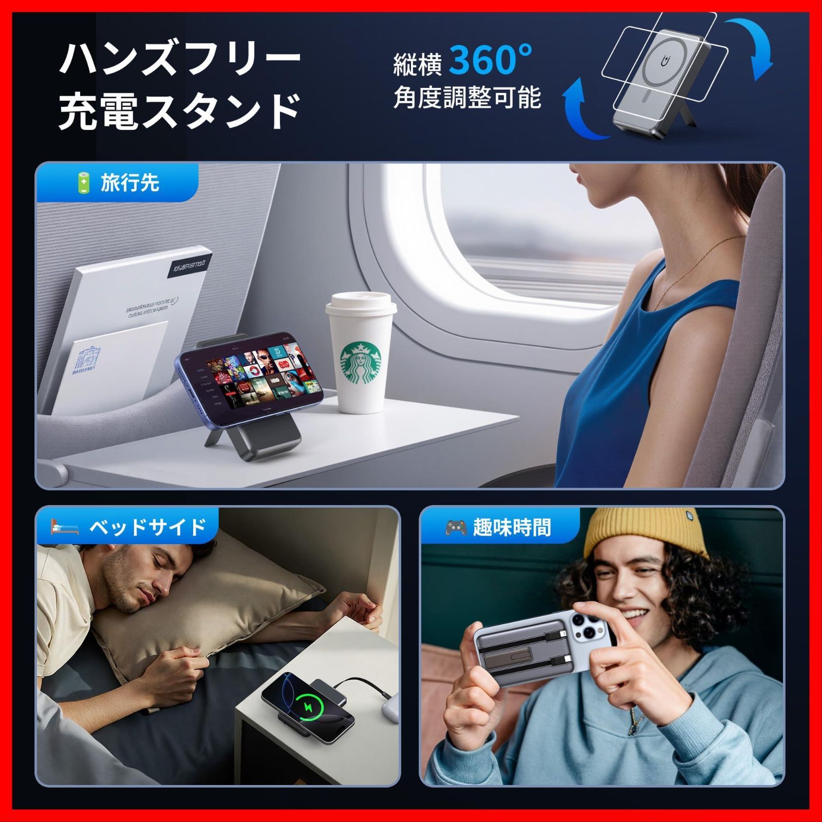 【16800mAhの超大容量・全デバイス対応の万能バッテリー】スマホはもちろん、タブレット、ノートPC、AirPodsまで全部OK!旅行・出張・災害時の備えにもぴったりで、「これ1台で安心」という安心感。しかもPSE認証済&飛行機持ち込み可能な安全基準内で、繰り返し約2000回使える長寿命設計!