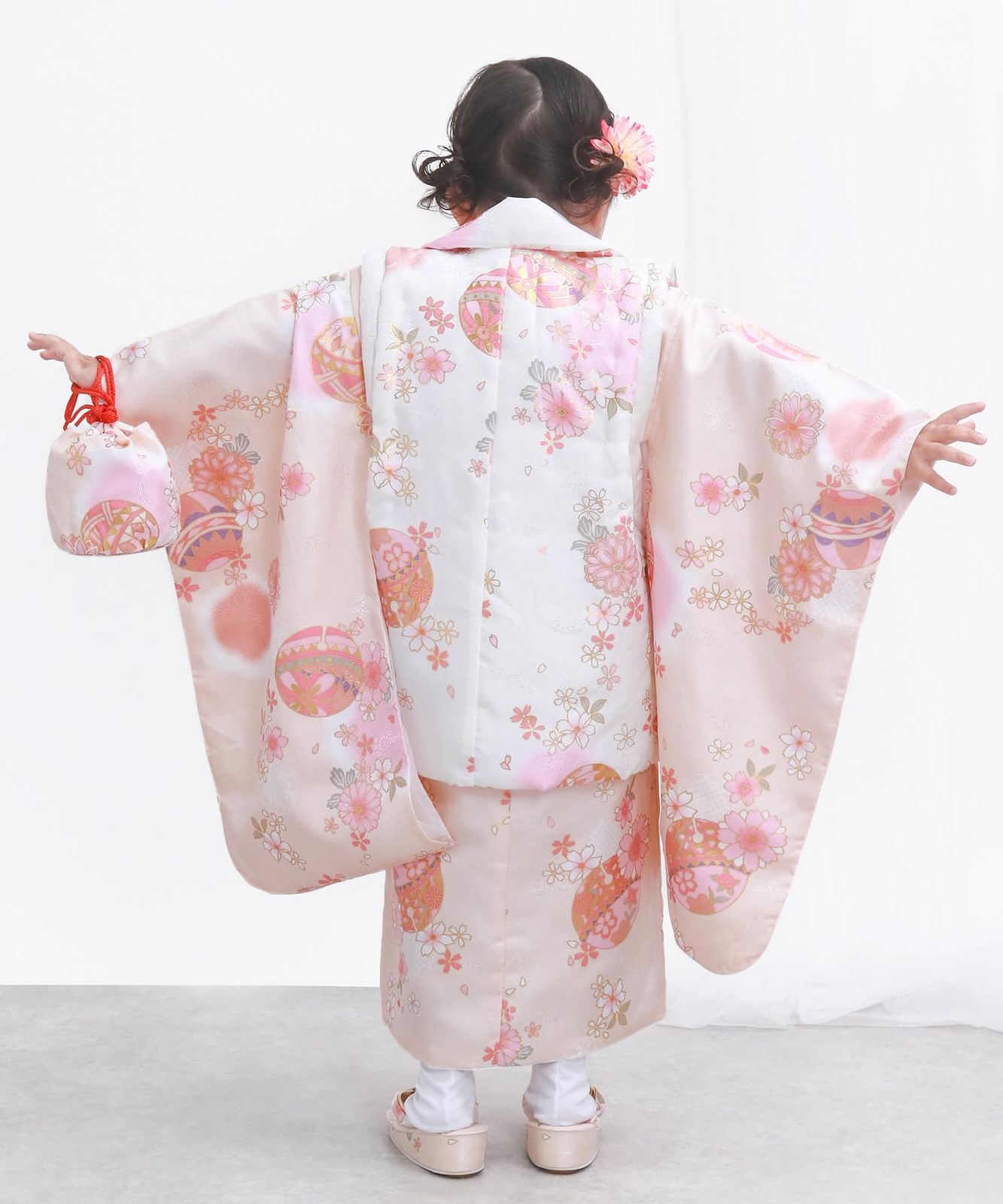 KYOETSU キョウエツ 七五三 3歳 女の子 着物 セット 被布 小物 フルセット 754 くすみ B 7 霞橙の鞠幻想