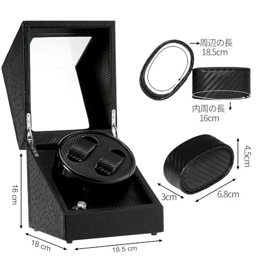 ワインディングマシーン 2本巻き ウォッチワインダー 自動巻きワインディングマシーン 日本製 マブチモーター 設計 腕時計自動巻き上げ機 男女の腕時計は全部使えます 2025年アップグレード 4つのモード設定 PU 炭素繊維 ブラック f 7065 ee 4