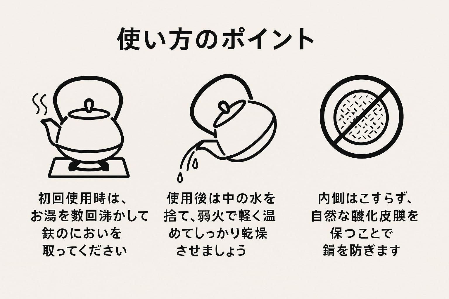 日本らしい鉄瓶は、どんなスタイルにもよく合う佇まいです。