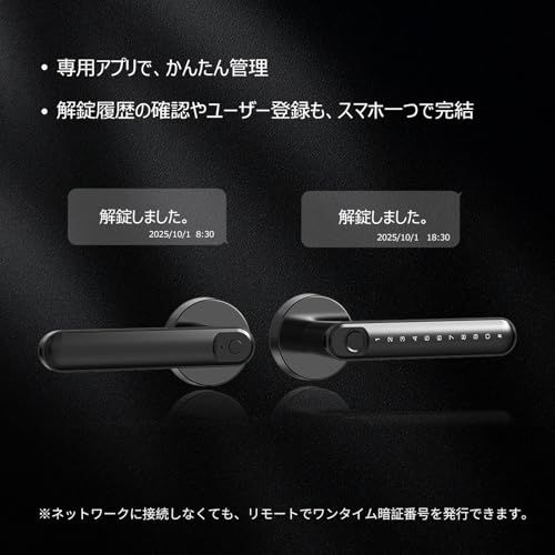 【使用シーン】 アプリを使った解錠履歴の確認や、ユーザー権限の管理が可能です。指紋、カード、暗証番号100個登録できます、ホテルや民泊、オフィスなど多人数が出入りする場所でも、安全かつスマートに管理ができます