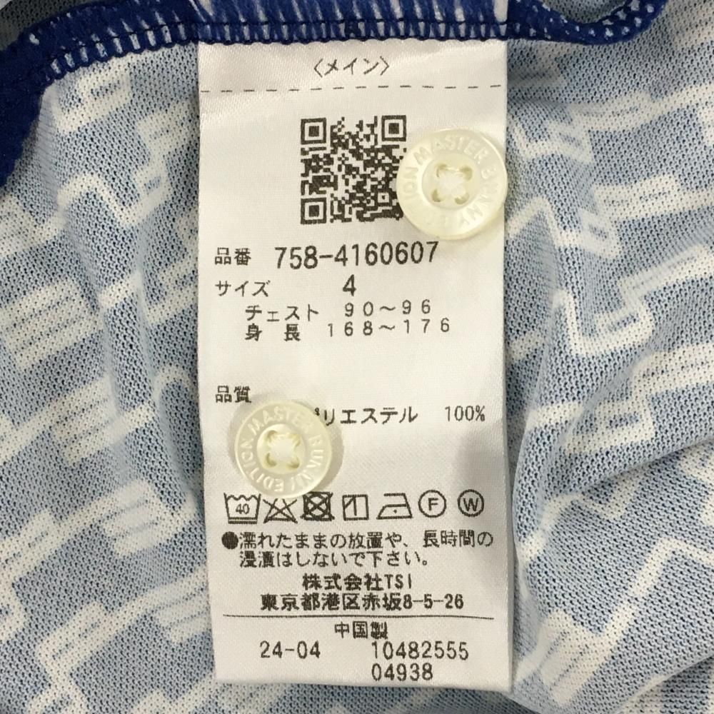 超 マスターバニー 半袖ポロシャツ ブルー×白 ロゴ総柄 メンズ 4 M ゴルフウェア モデル MASTER BUNNY EDITION