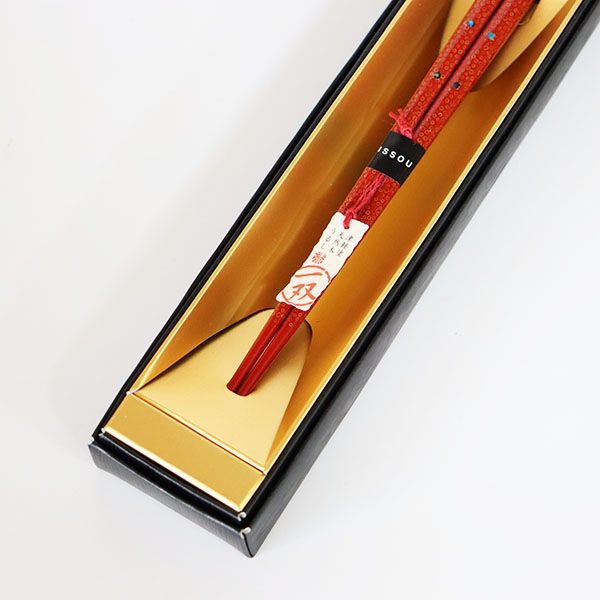 手触りと堅牢性に定評のある津軽塗の塗り箸は、 さわり心地が手になじみやすくさらに丁寧に使用すると十年以上も使える、丈夫な箸となっています。