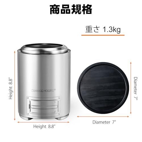 CHANGE MOORE フレイムストーブ ウッドストーブセット 二次燃焼 卓上用 小型 焚き火台 バーベキューコンロ キャップ用 軽量 収納袋付き 携帯便利 シルバー ブラック 50621 f 9 d
